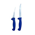 Butchers Curved 5" Boning Knife and 6" Straight Slicing Knife in Blue, a precision pair meticulously designed to excel in diverse cutting tasks. Crafted for professionals and enthusiasts seeking top-tier performance, these knives boast exceptional features tailored to specific cutting needs.